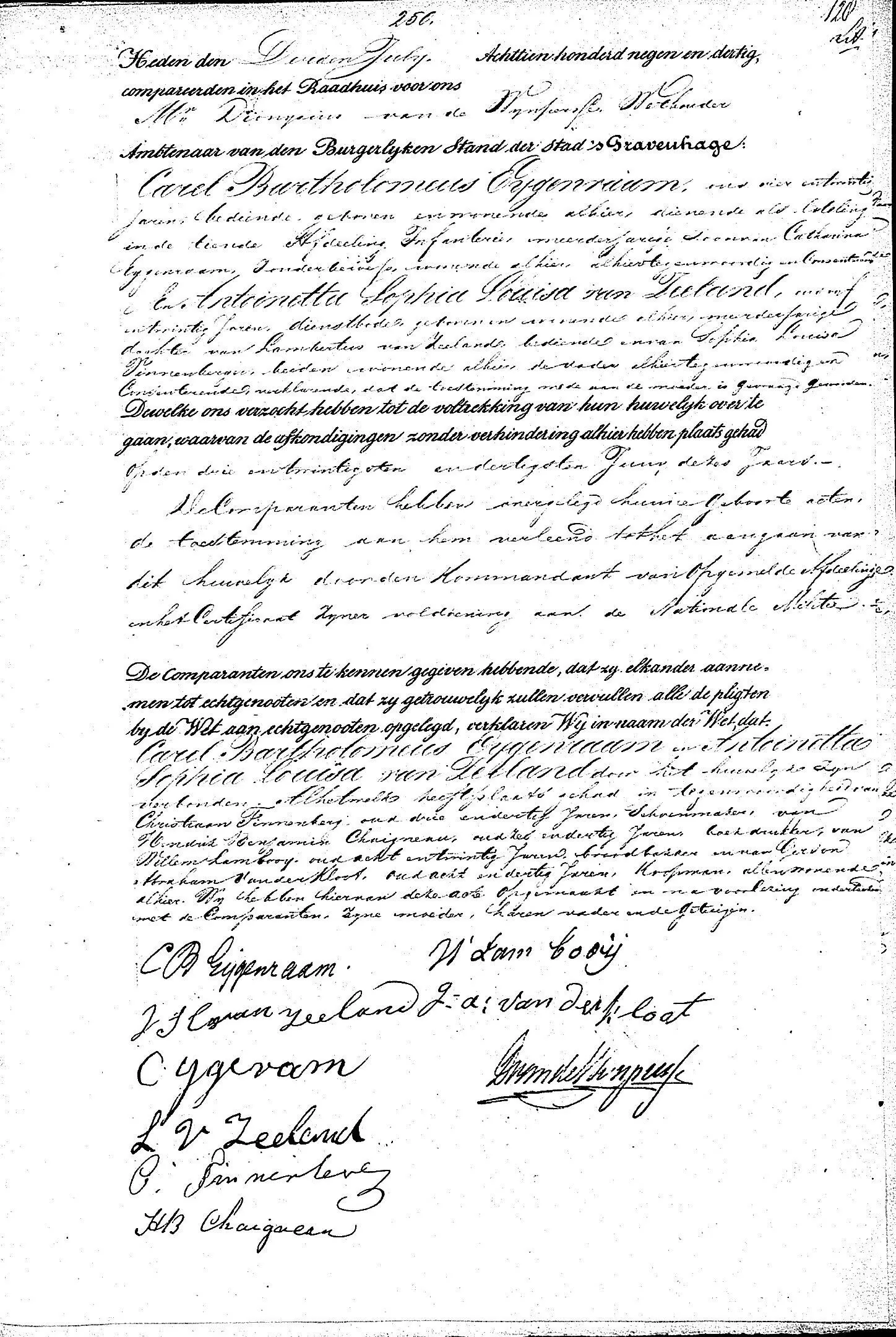 • Trouwakte Carel Bartholomeus Eijgenraam en Antoinetta van Zeeland 1839