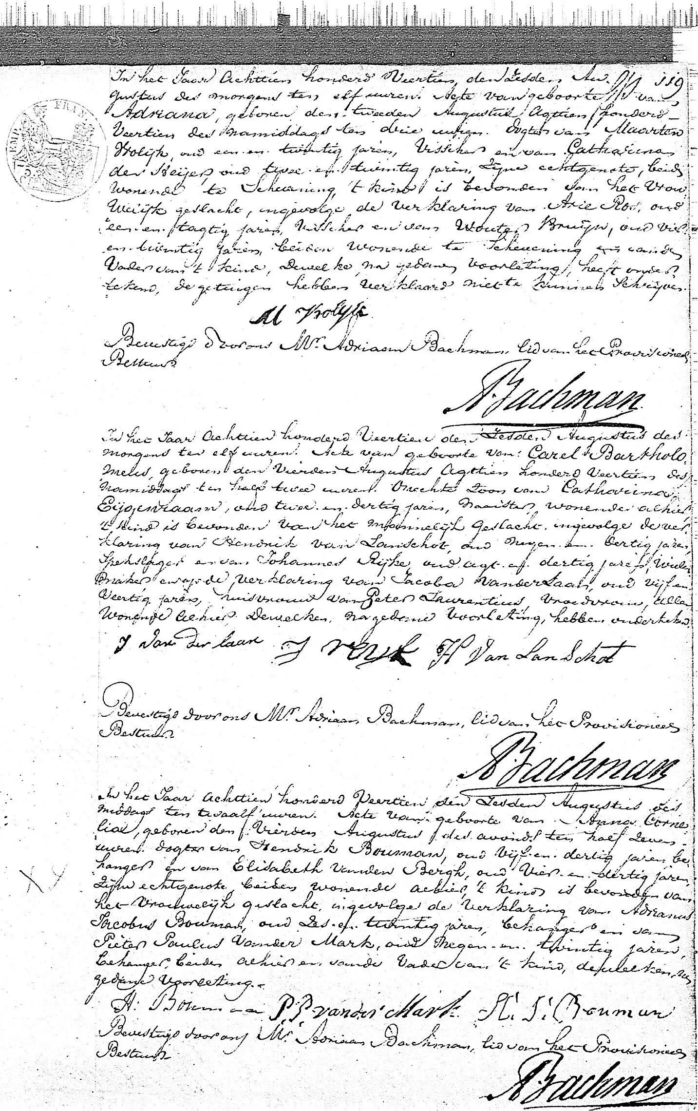 • Trouwakte Carel Bartholomeus Eijgenraam en Antoinetta van Zeeland 1839
